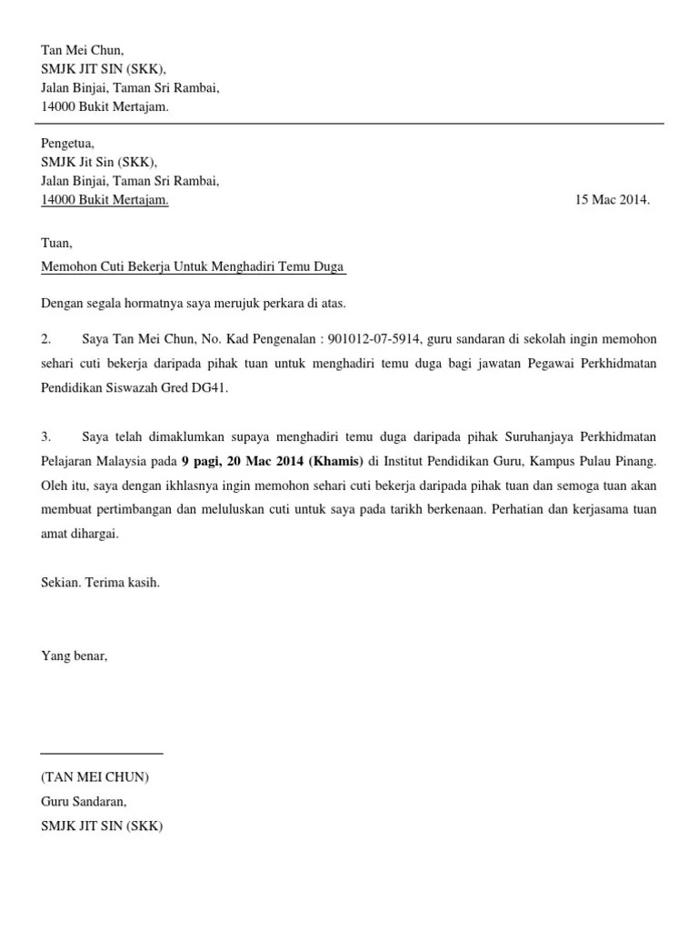To find out more complete and clear information or images you can visit. Untuk itu kami akan memberikan jawaban dan contohnya . Surat rasmi memohon cuti tanpa gaji surasmi k . Format surat rasmi permohonan cuti.